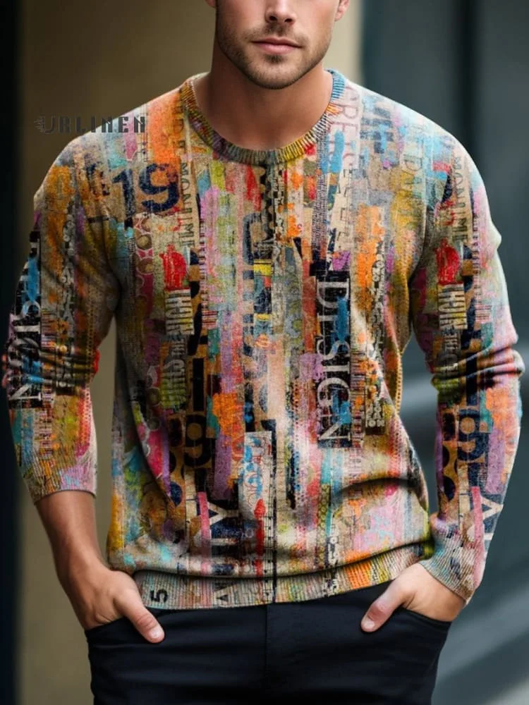Geometry Color Gradient Art Print Knit Pullover Sweater