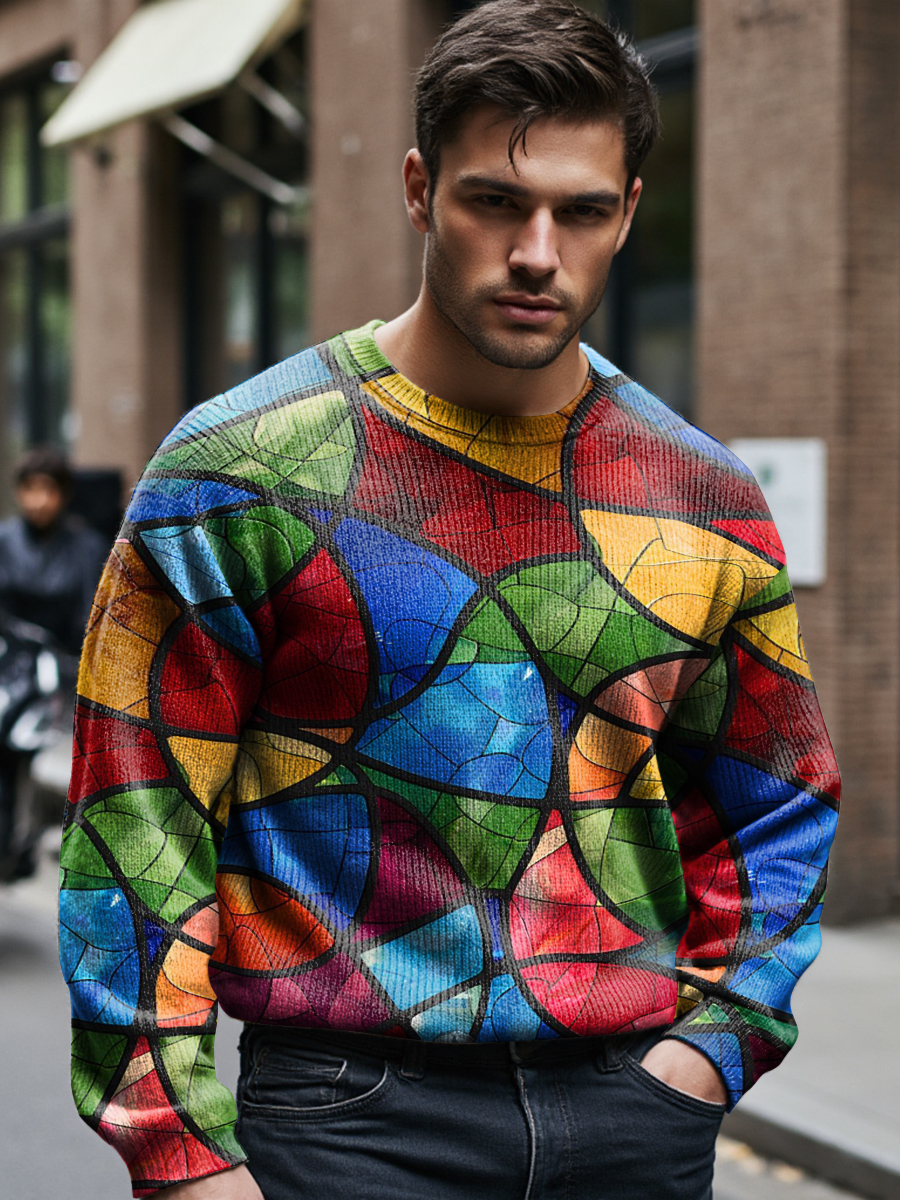 Colorful Geometric Block Decorative Pattern Knit Pullover Sweater