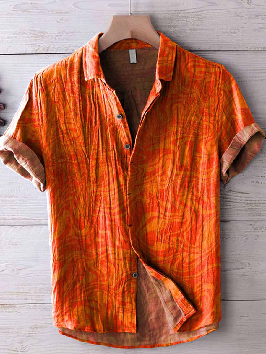 Colorful Gradient Ripple Decorative Pattern Casual Cotton And Linen Shirt