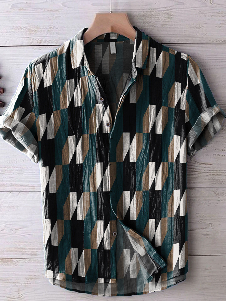 Geometric Decorative Patterns Casual Cotton And Linen Shirt