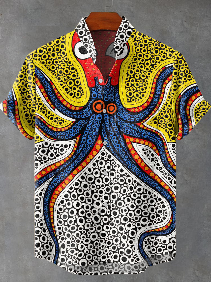 Drawing Art Octopus and Geometric Circles Decorative Pattern Casual 100% Cotton Shirt