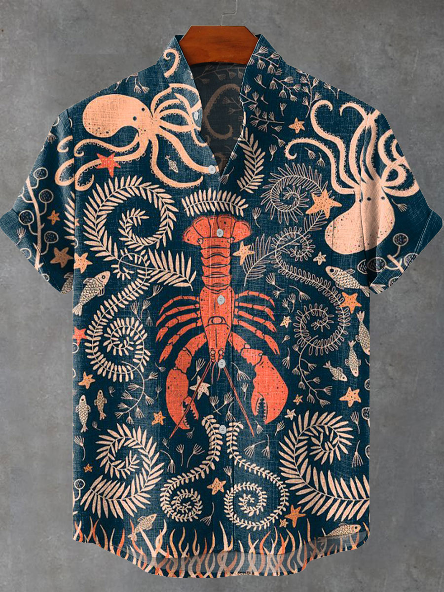 Lobster and Octopus Patterns Print Casual 100% Cotton Shirt