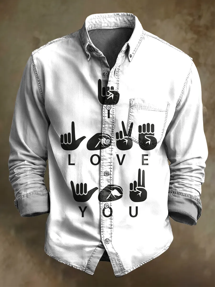 Valentine's Day Art Print Long Sleeve Cotton Shirt