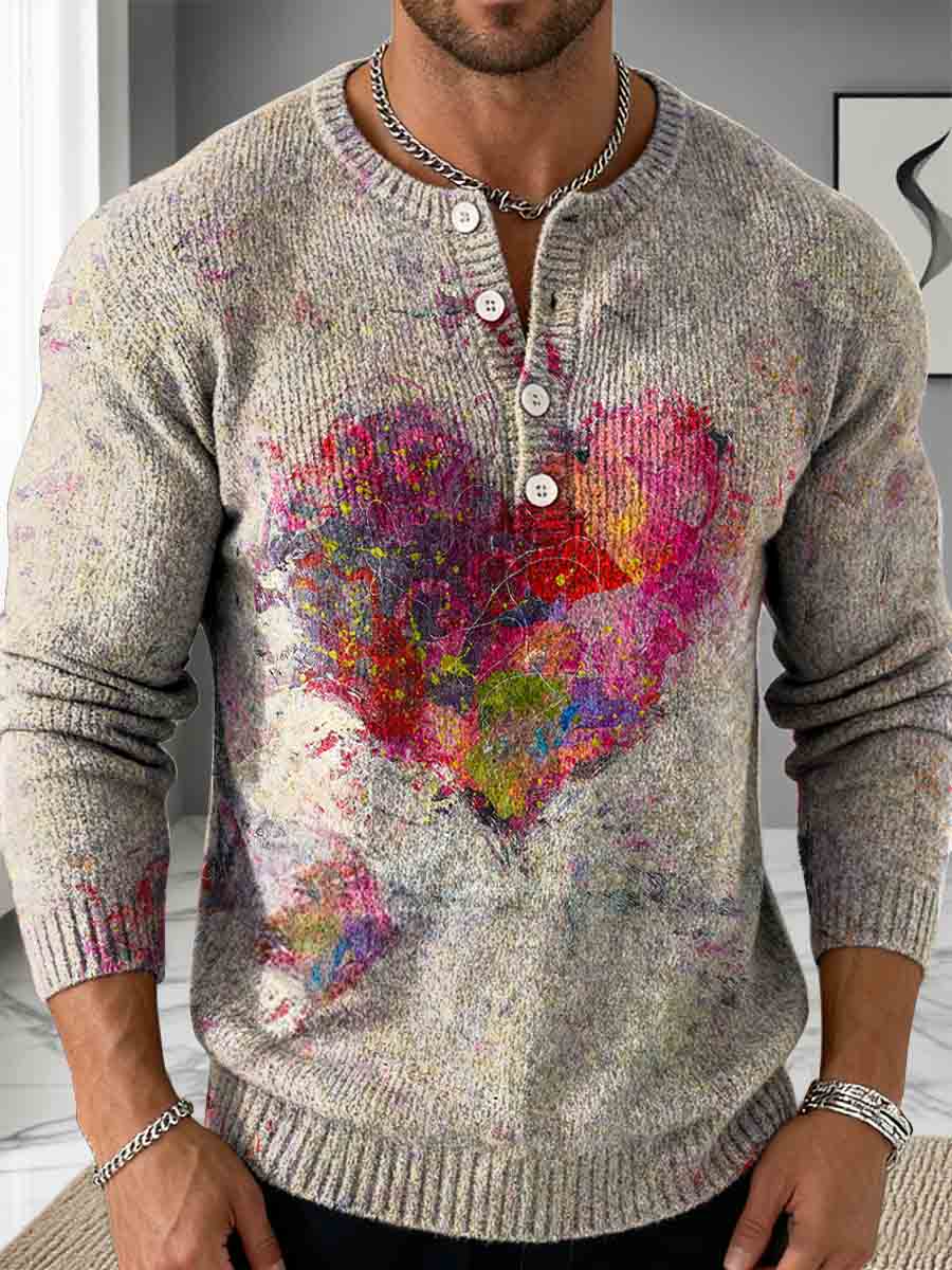 Vintage Valentine's Day Heart Print Buttoned Cardigan Sweater