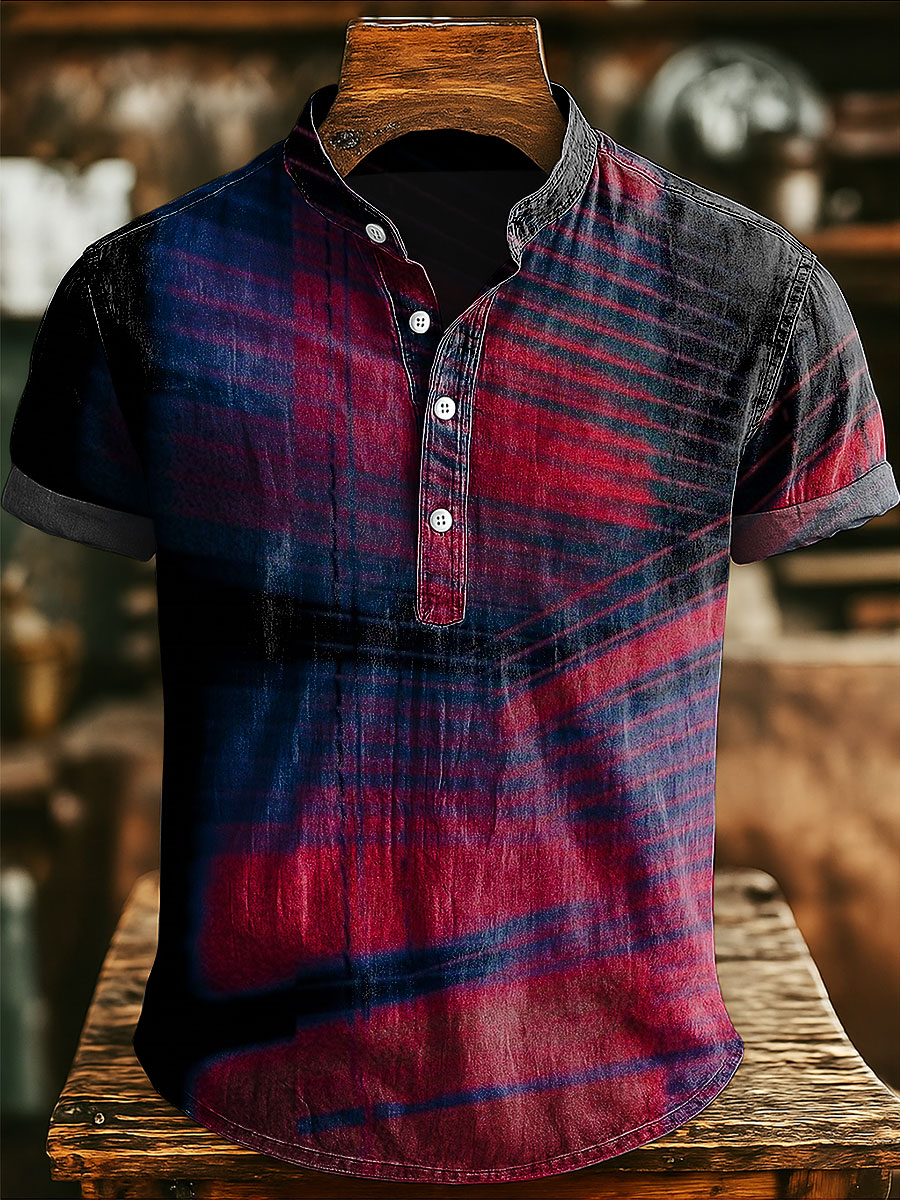 Color Gradient Pattern Art Vintage Print Casual Cotton And Linen Polo