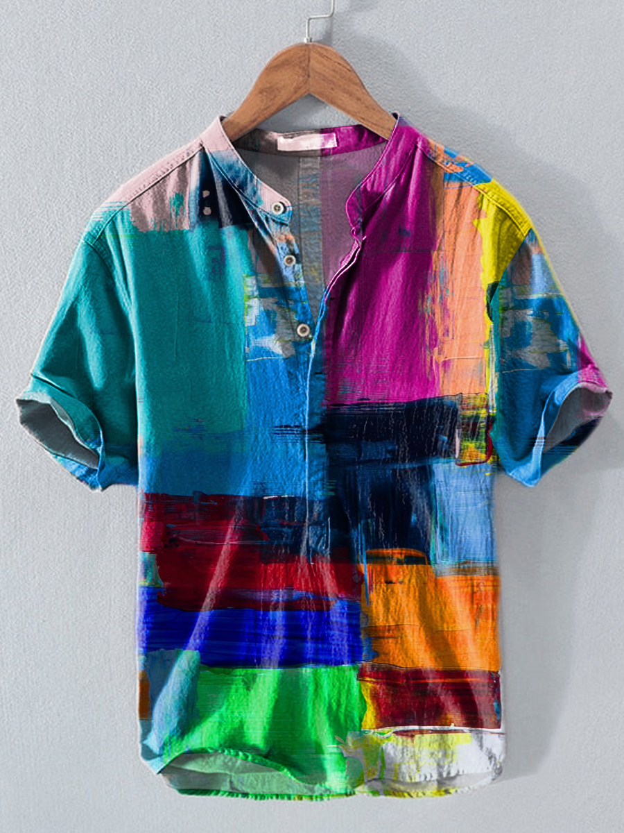 Colorful Abstract Graffiti Geometric Art Vintage Print Casual Cotton And Linen Polo