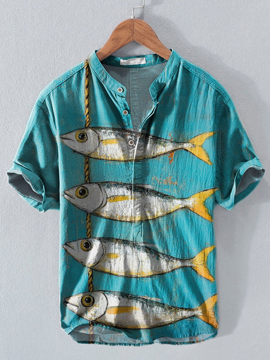 Sardine Fish Art Vintage Print Casual Cotton And Linen Polo