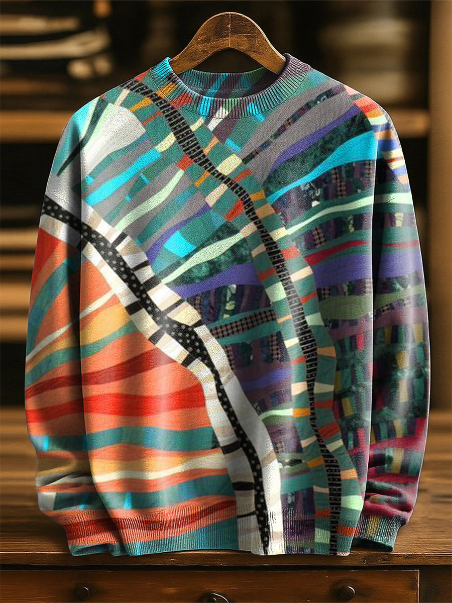 Geometry Color Gradient Art Print Knit Pullover Sweater