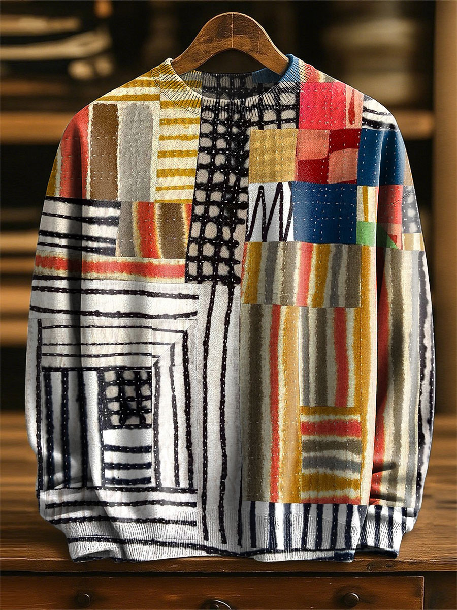 Geometry Color Gradient Art Print Knit Pullover Sweater
