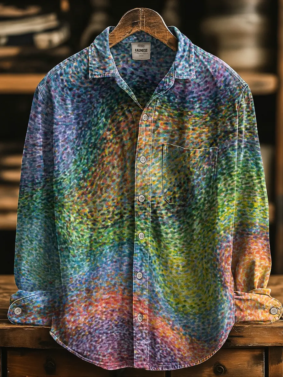 Retro Colorful Gradient Mottled Print 100% Cotton Long Sleeve Shirt