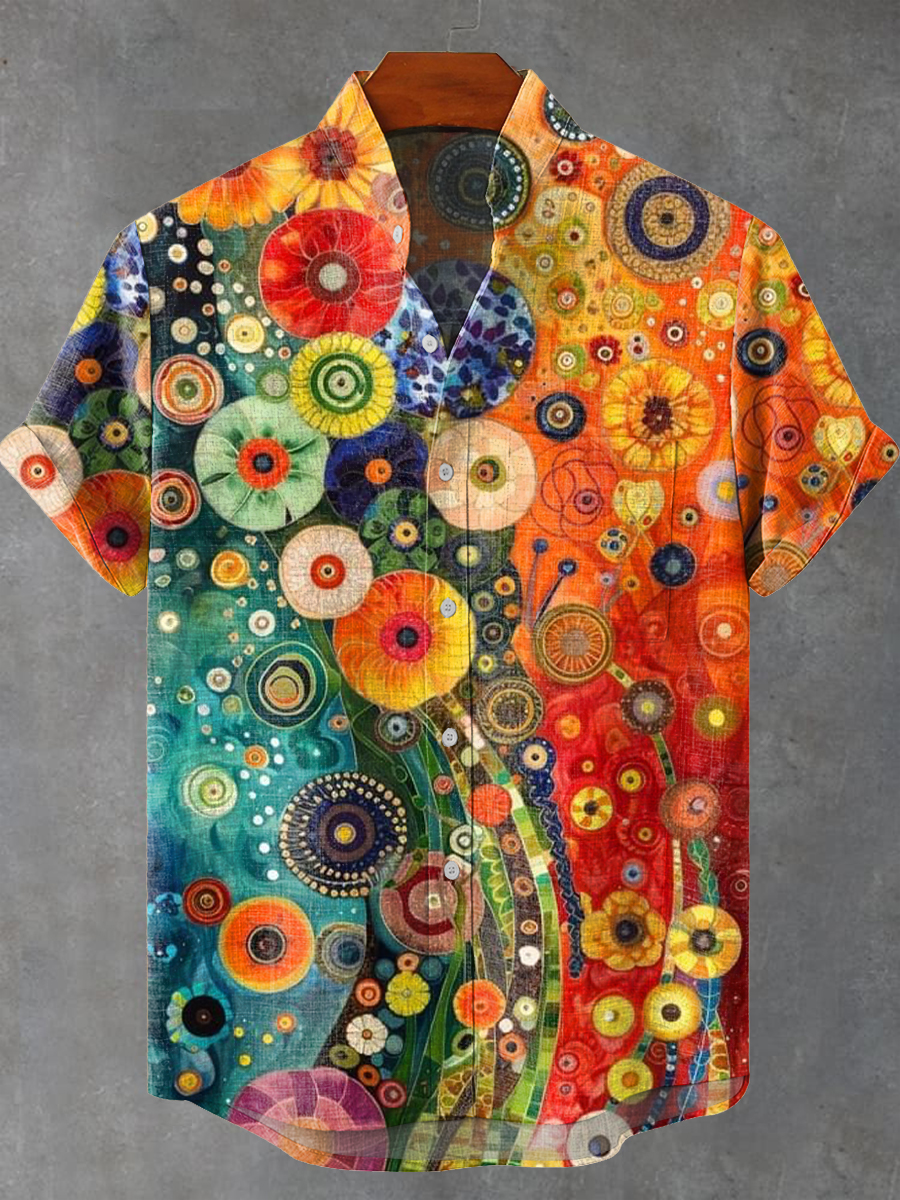 Retro Ethnic Style Round Flowers Print Casual 100% Cotton Shirt
