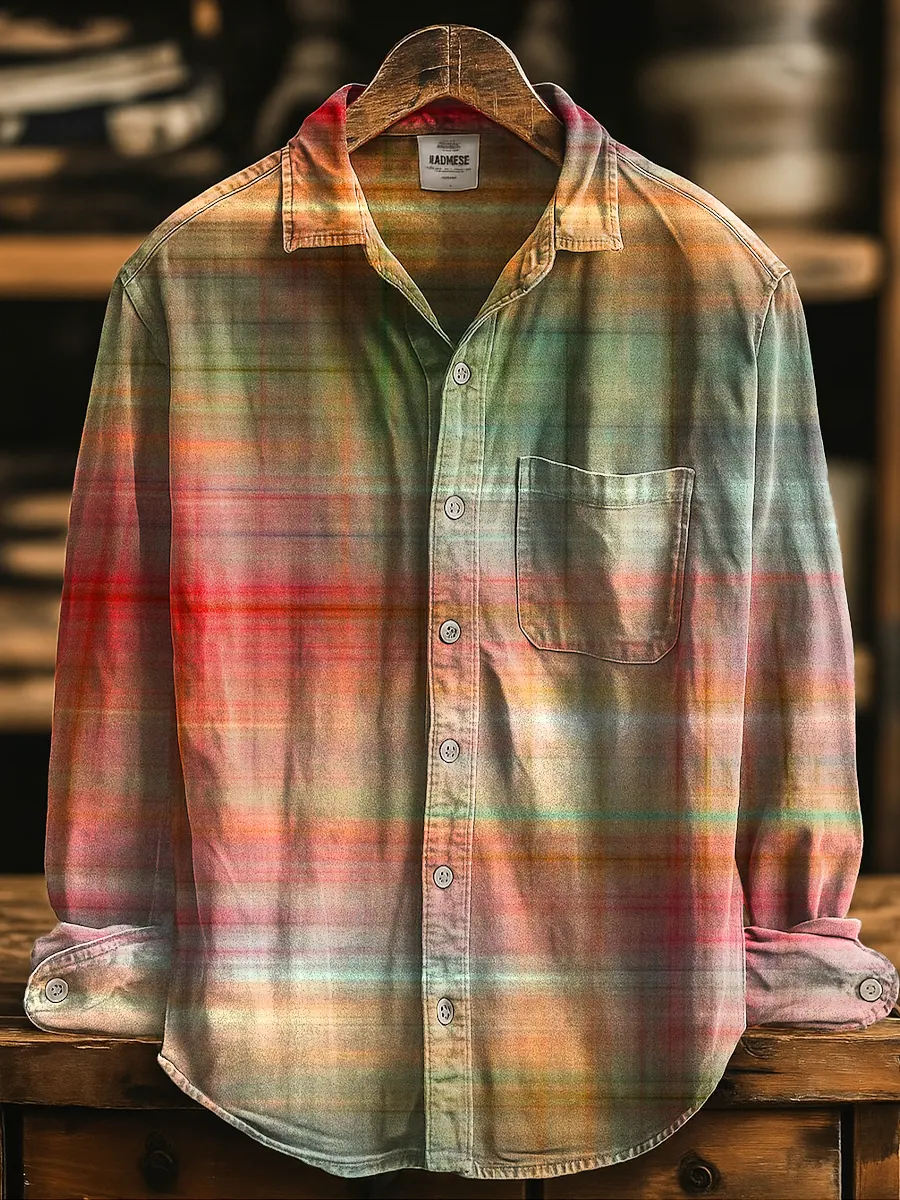 Retro Gradient Colors Print 100% Cotton Long Sleeve Shirt