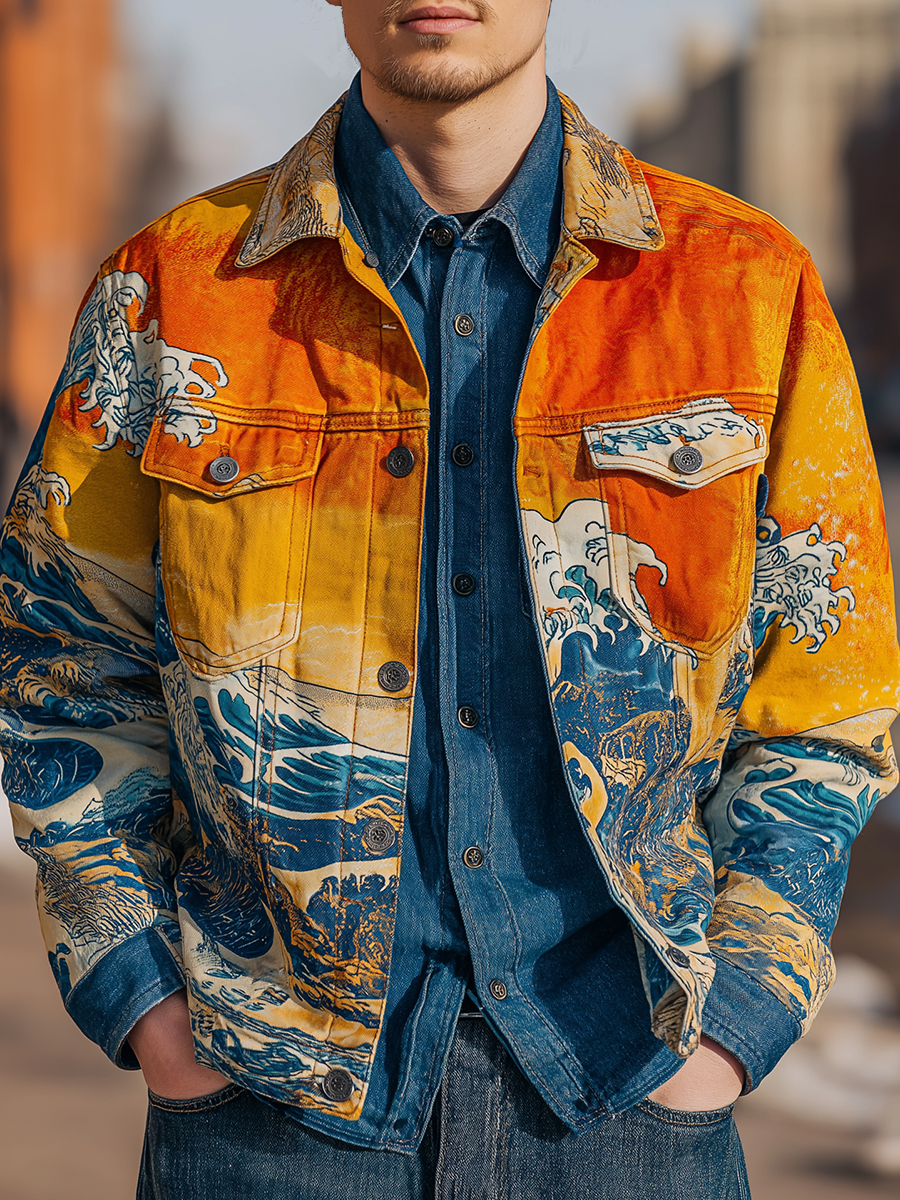 Vintage Japan Art Print Denim Jacket