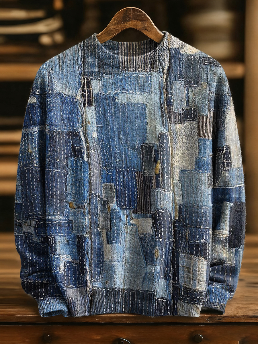Vintage Patchwork Fabric Print Knit Pullover Sweater