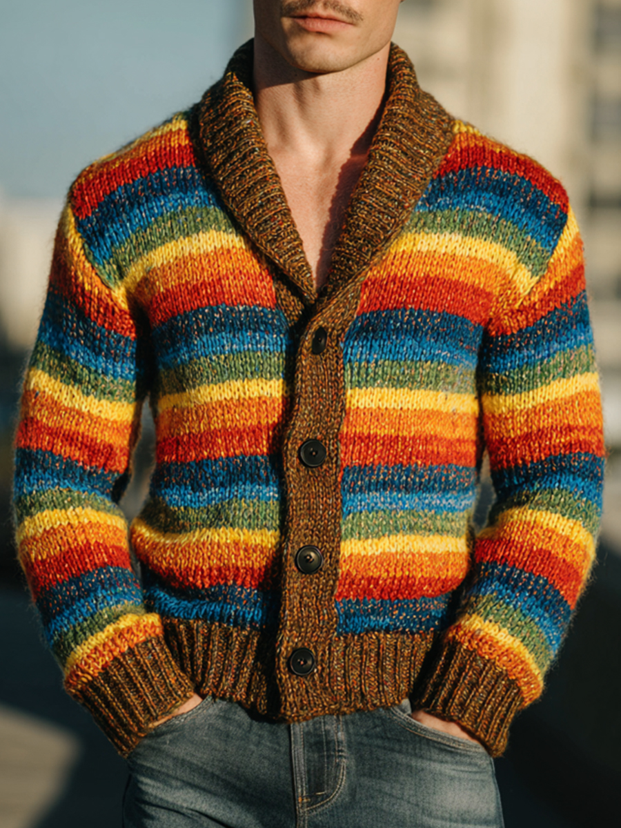Vintage Rainbow Stripes Print Knit Cardigan